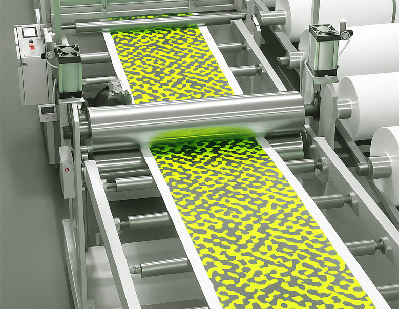 3. Raw materials will be pushed through the tubes and then passed through two rollers and a PC film, if needed.